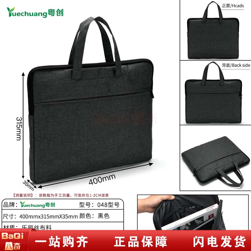 商品名称:粤创 048手提收纳包商务公文包综合办公文件包时尚差旅公事包会议学习包 黑色
