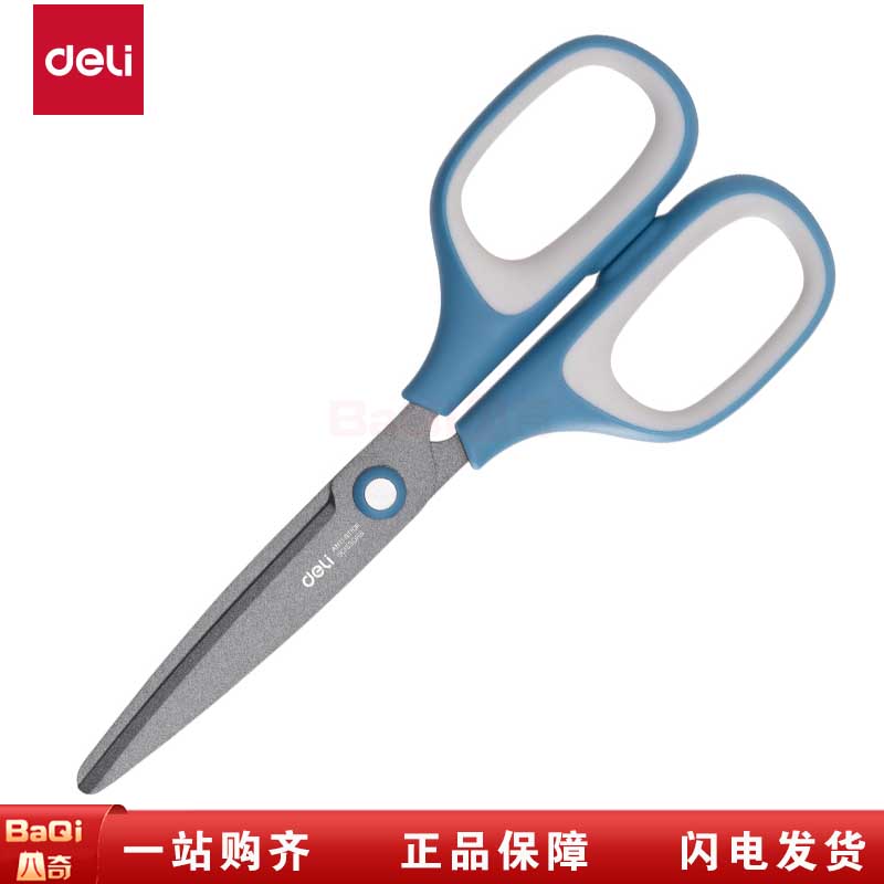 商品名称:得力6055蓝色办公快递专用剪刀不粘胶舒适握柄
