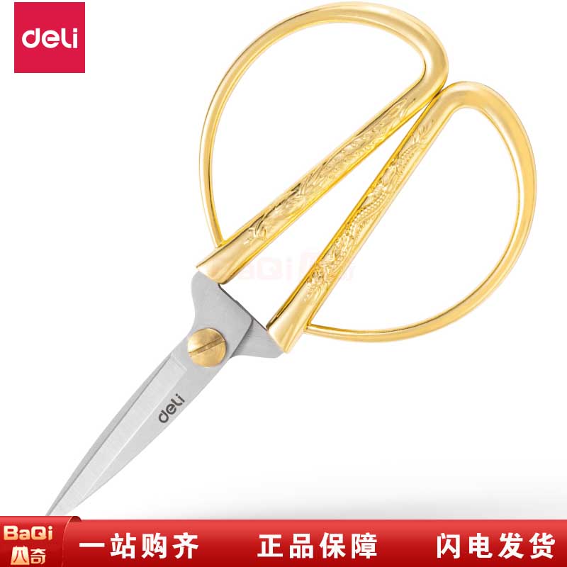 商品名称:得力TJ175金色不锈钢家用中式龙凤金色剪刀剪彩结婚