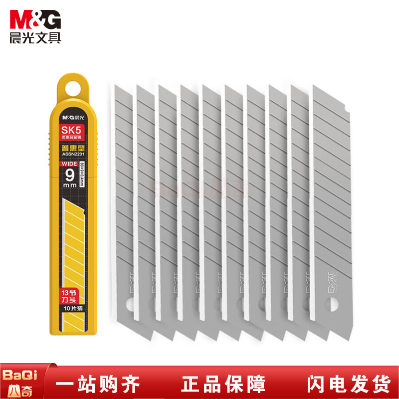商品名称:晨光ASSN2231 9mm小号美工刀片 13刀头SK5合金钢刀片/替换刀片 办公用品 盒装(10片/盒)