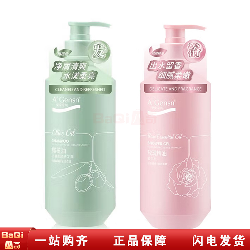 商品名称:安安金纯 洗发沐浴套装(橄榄油去屑柔顺洗发露750g+玫瑰精油香浴乳750g)
