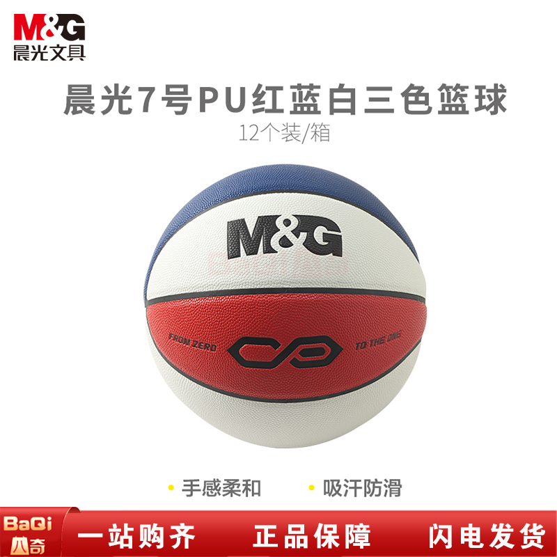 商品名称:晨光AST09505 7号PU经典红蓝白三色篮球 (12个/箱)