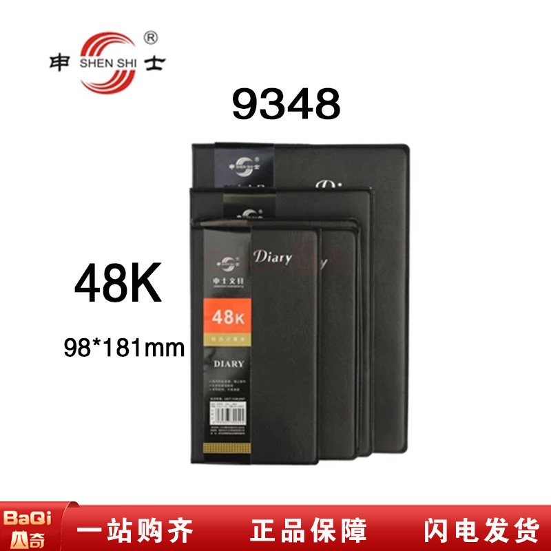 商品名称:申士 9348 48K高频本93系列 笔记本记事本70克白纸70页 黑色 98*181mm(260本/箱)