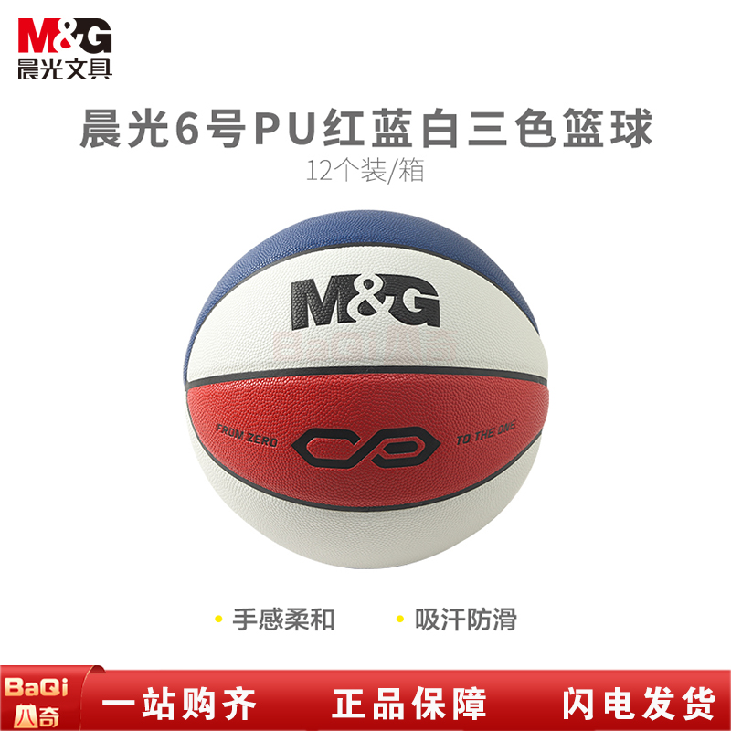 商品名称:晨光AST09504 PU6号经典红蓝白三色篮球 (12个/箱)