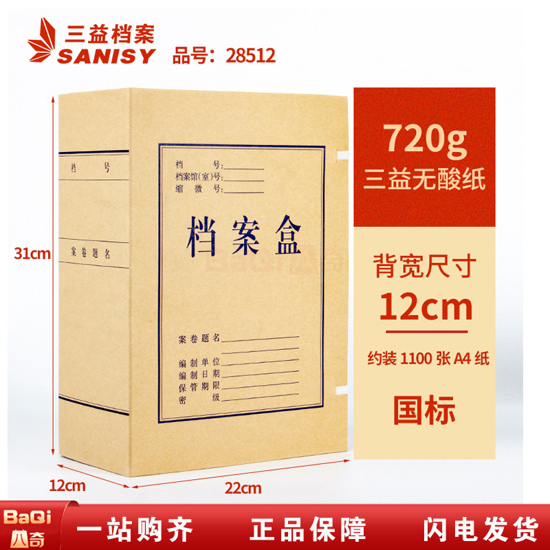 商品名称:三益档案 28512 国标A4档案盒文件盒720g无酸纸背宽12cm
