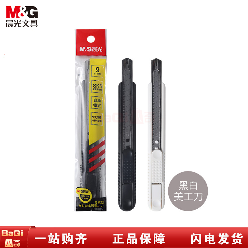 商品名称:晨光ASSN2254 9mm铝合金护套小号美工刀 壁纸刀裁纸刀/小刀 办公用品 白色/黑色