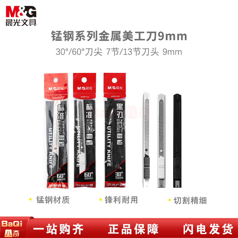 商品名称:晨光ASS913V5 锰钢系列金属9mm美工刀 30°白刃