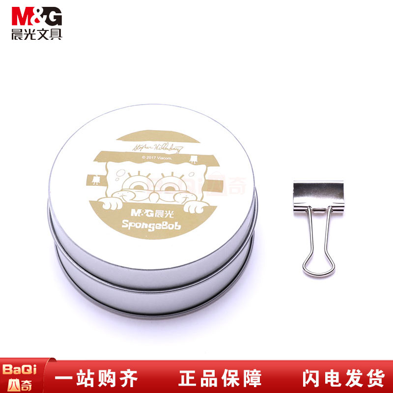 商品名称:晨光QBS92874 海绵宝宝圆形铁盒长尾夹15mm
