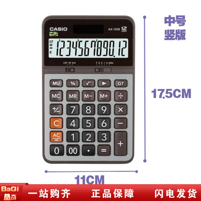 商品名称:卡西欧 AX-120B 电子计算器 计算器金属面板 双重电源财务办公台式计算机110.5*175.5*25mm