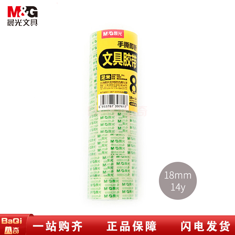 商品名称:晨光AJD97321 文具透明胶带小号学生专用胶条胶纸细交带办公财务强力封口胶布环保封箱带 18mm*14Y (8卷/筒)
