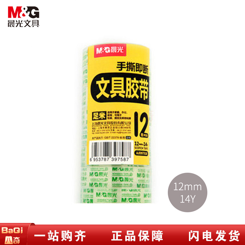 商品名称:晨光AJD97318 透明胶带小号学生专用胶条胶纸细交带办公财务强力封口胶布环保封箱带 12mm*14Y (12卷/筒)