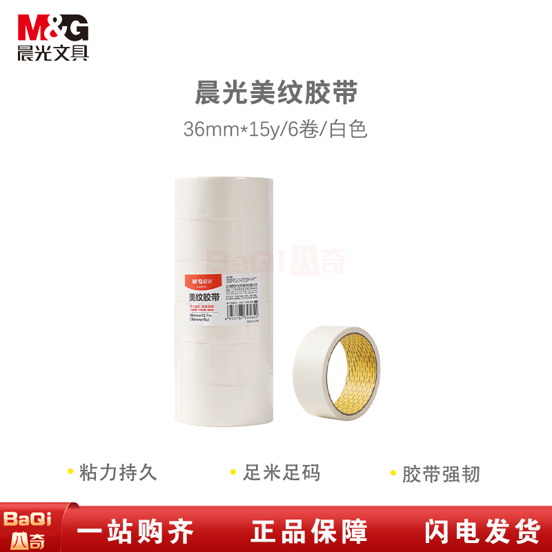 商品名称:晨光AJD97357 美纹纸胶带 装修遮蔽纸胶带 无痕纸贴膜纸 36mm*15y (6卷/筒)