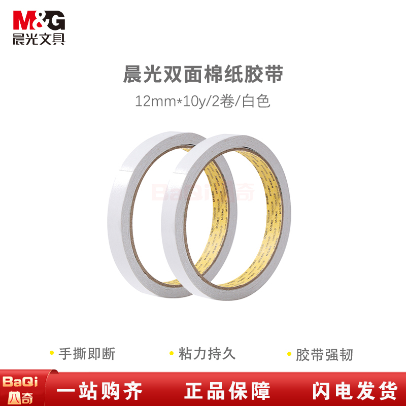 商品名称:晨光AJD97349 棉纸双面胶带高粘度双面胶高强度棉纸胶带办公学生手工用胶布 12mm*10y( 2卷/包)