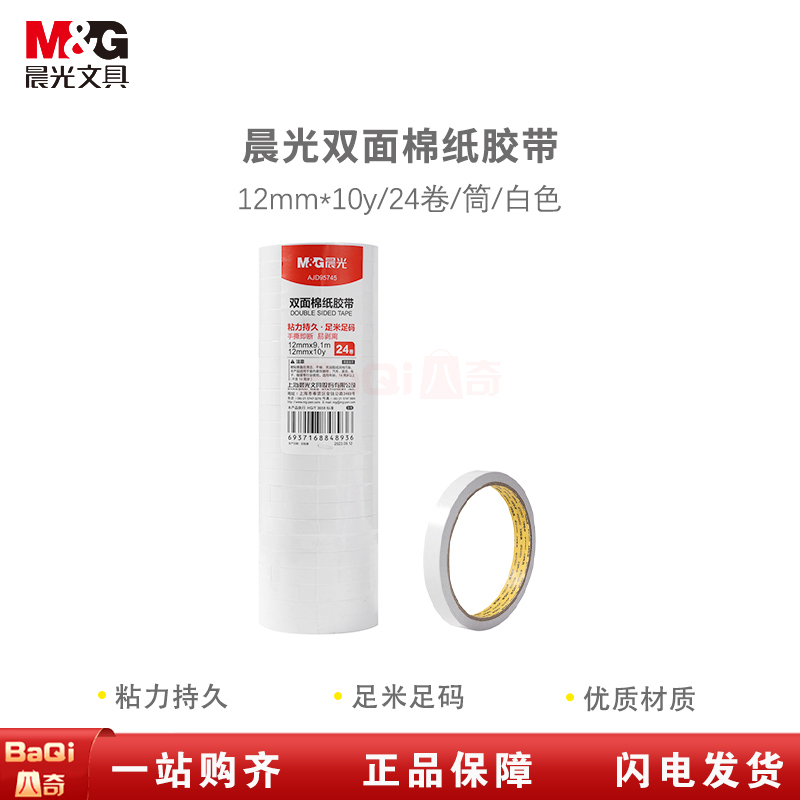 商品名称:晨光AJD95745 双面胶高粘性棉纸胶带学生办公通用双面胶带 12mm*10y (24卷/筒)