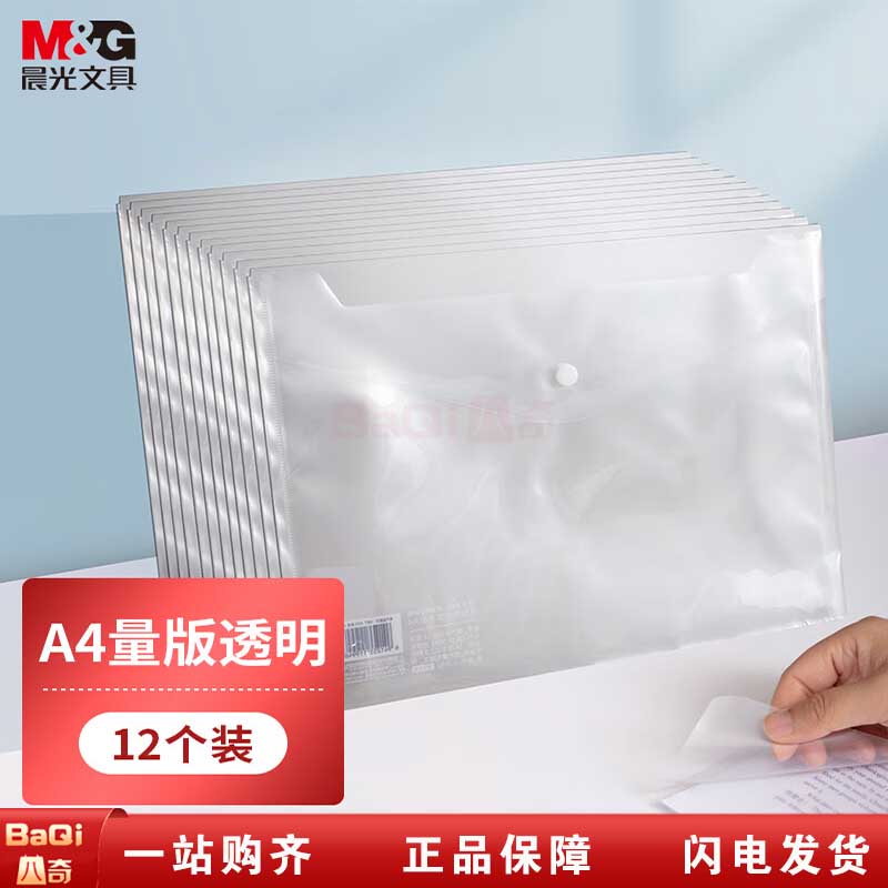 商品名称:晨光ADM94897 白色透明纽扣袋 按扣袋 A4办公文件袋学生试卷收纳档案袋 资料整理收纳袋(12个/包)