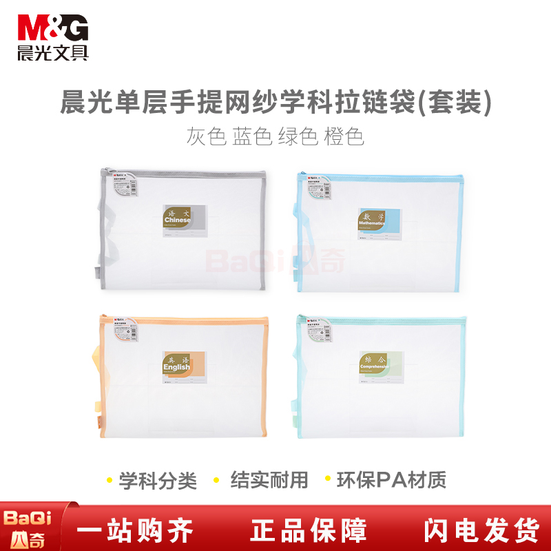 商品名称:晨光ADM929WL 文件袋单层手提网纱学科袋拉链袋套装(数学+英语+语文+综合)