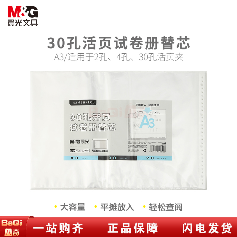 商品名称:晨光ADM929TF 资料册收纳册A3 20页30孔活页试卷册替芯