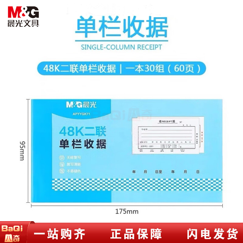 商品名称:晨光APYYGK71 票据收据二联单栏48K (10本/盒)