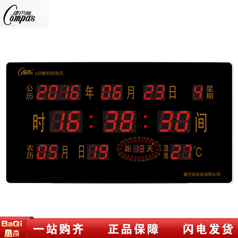 康巴丝 318万年历电子挂钟LED数码日历时钟挂表