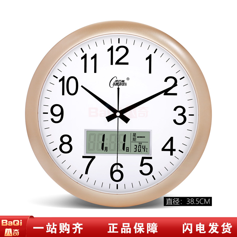 商品名称:康巴丝 3128Y 电子钟表静音挂钟客厅日历时钟现代简约石英钟家用时尚挂表
