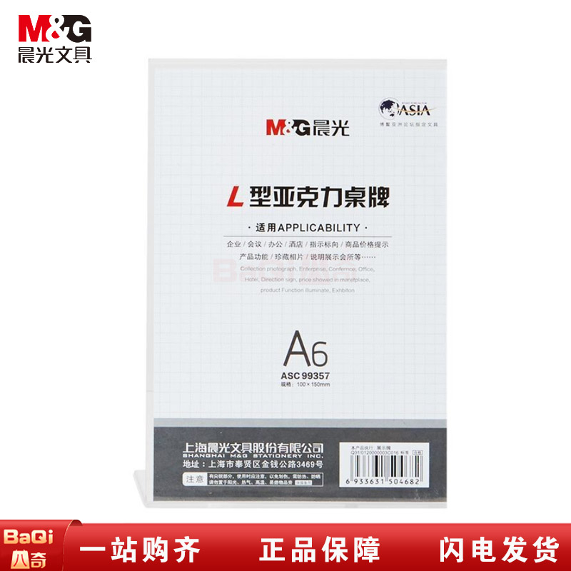 商品名称:晨光ASC99357 L型亚克力A6台卡台签 会议桌牌席位卡 座位牌广告展示牌(1个装)