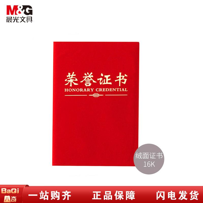 商品名称:晨光ASC99309 荣誉证书 聘书 绒面 PU皮面 特种纸封面 内芯 16K绒面证书 (1本装)