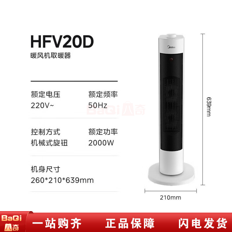 美的 HFV20D 2000w电热风扇家用大面积立式轻音节能260*210*639mm