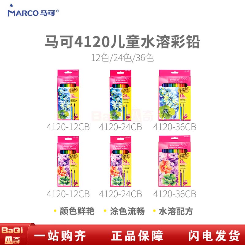 商品名称:马可4120 六角杆儿童水溶性彩色铅笔 (12色/盒)