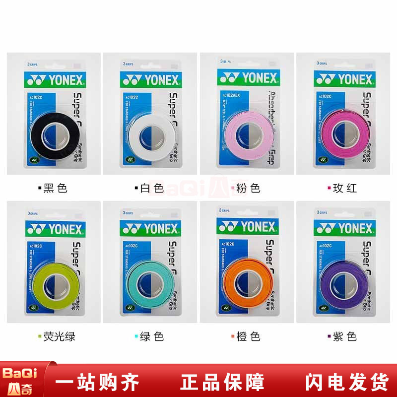商品名称:尤尼克斯 AC102C 羽毛球拍手胶防滑吸汗绑带yy网球拍手柄缠带3条装/卷